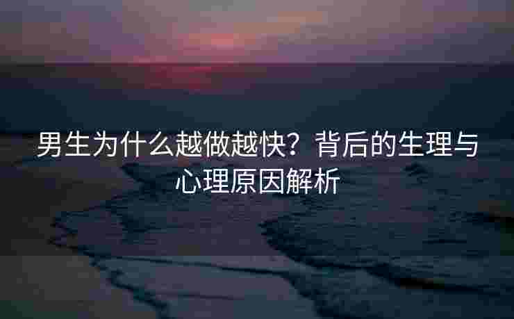 男生为什么越做越快?背后的生理与心理原因解析原标题:男生为什么越做越快?背后的生理与心理原因解析
